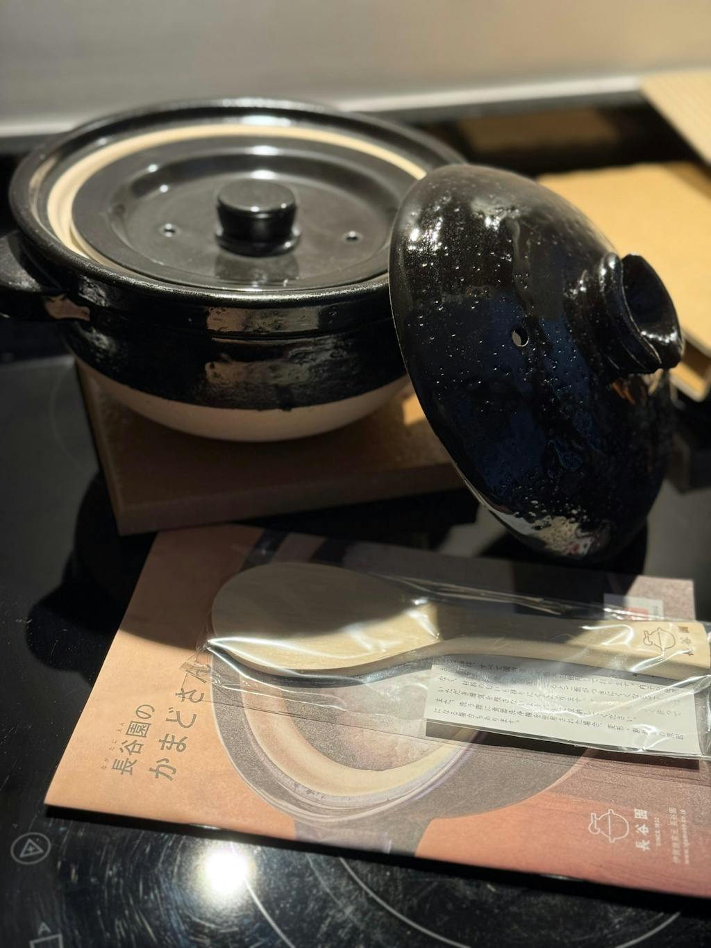 - Lieferumfang: Donabe-Topf, Innendeckel, Aussendeckel und ein Reislöffel aus Buchenholz (Beschreibung nur in japanisch)